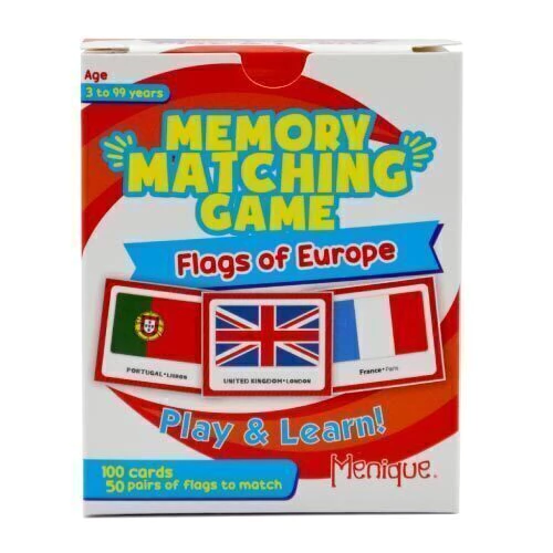 Divertido juego de memoria de Banderas de Europa en INGLÉS ideal para toda la familia: de 3 a 99 años. ¡Diviértete mientras aprendes y agilizas la mente!
